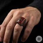 Ay Yıldızlı Gümüş Yüzük, Kırmızı Kehribar Taşlı Yüzük, Kurt Figürlü Erkek Yüzük, Askeri Ruhlu Gümüş Yüzük, Kişiye Özel Erkek Yüzük, 925 Ayar Gümüş Yüzük, Modta Kuyumculuk
