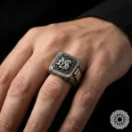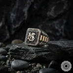 Harfli Gümüş Yüzük, Çiftlere Özel Yüzük, Siyah Taşlı Erkek Yüzük, Kişiye Özel Aşk Yüzüğü, 925 Ayar Gümüş Yüzük, Eş Harfli Tasarım, Modta Kuyumculuk