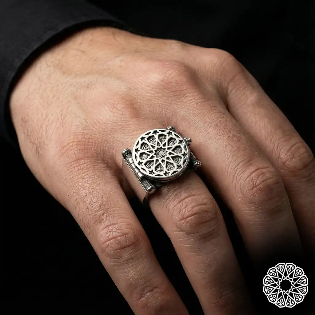 Esmaül Hüsna Yüzük, Kapaklı Gümüş Yüzük, Manevi Temalı Erkek Yüzük, Dini Gravürlü Yüzük, Kişiye Özel Gümüş Yüzük, 925 Ayar Gümüş Erkek Yüzük, Modta Kuyumculuk