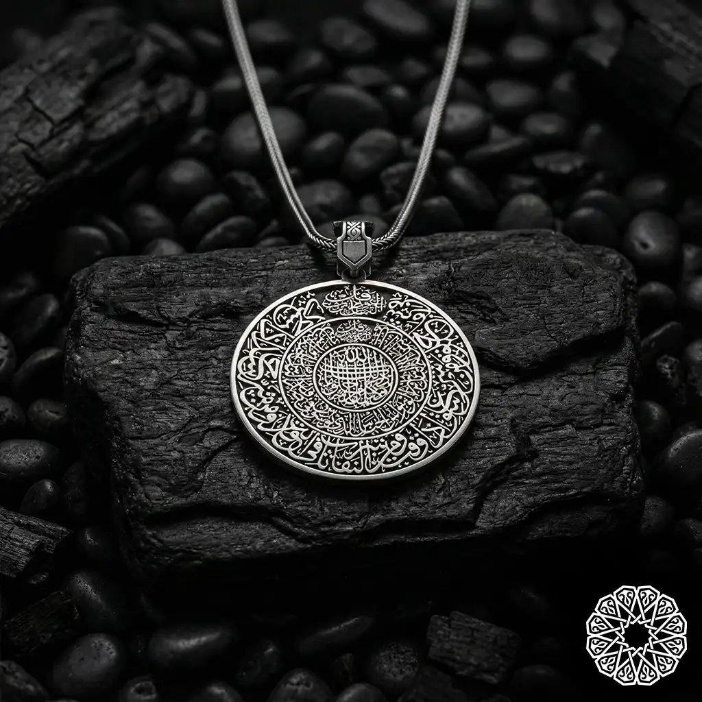Hz. Süleyman Mührü Kolye, Dualı Gümüş Kolye, Ayet-el Kürsi İşlemeli Kolye, Nazar Ayetli Takı, Manevi Koruma Aksesuarı, 925 Ayar Gümüş Erkek Kolye, Modta Kuyumculuk