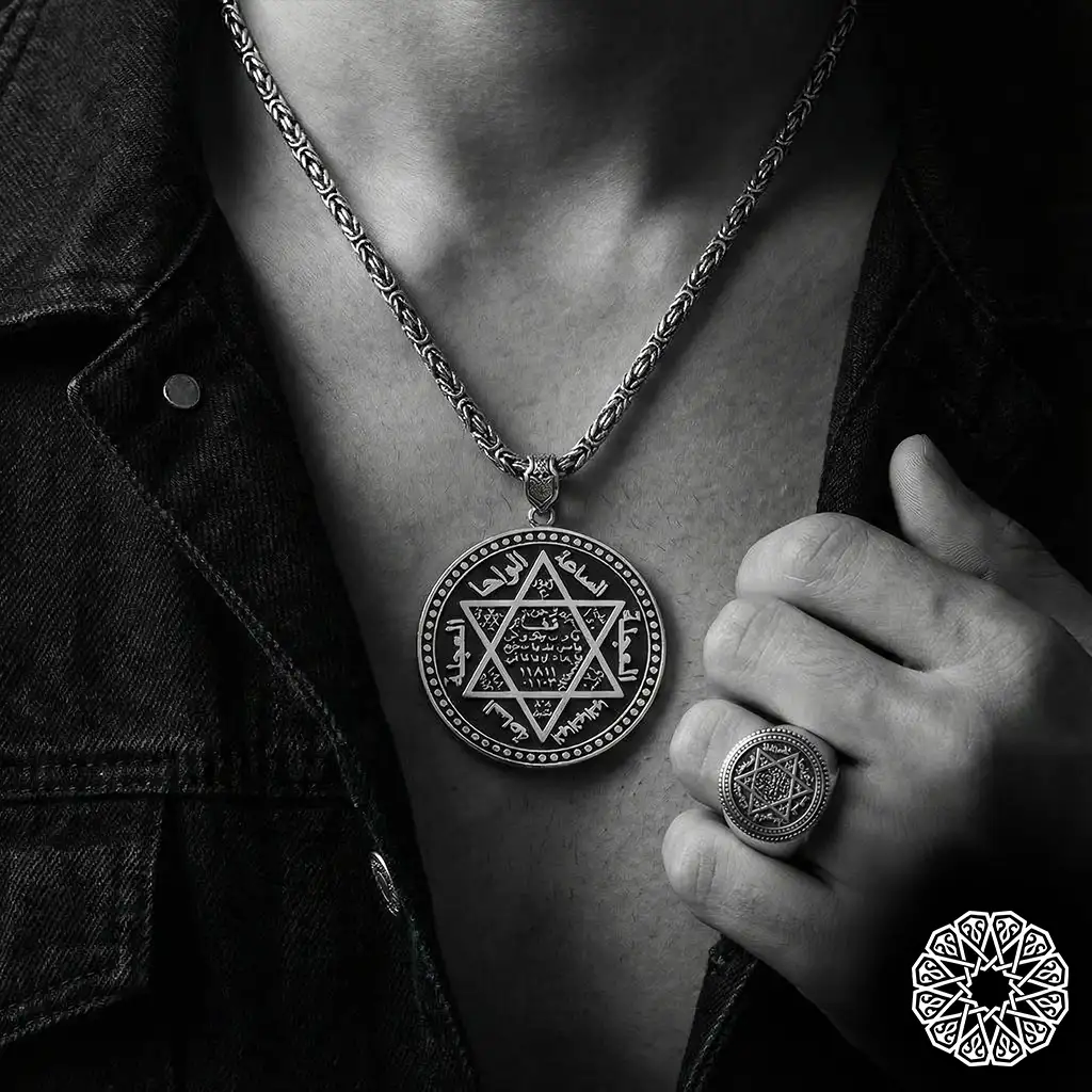 Hz. Süleyman Mührü Gümüş Kolye & Yüzük Seti