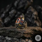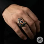 Ortasında bozkurt ve asker figürü, çevresinde 16 Türk Devleti’nin simgeleri, yan kısımlarında ise kılıç motifleri bulunan bu özel zihgir yüzük, cesaretin, birliğin ve Türk ruhunun parmakta vücut bulmuş hâlidir.